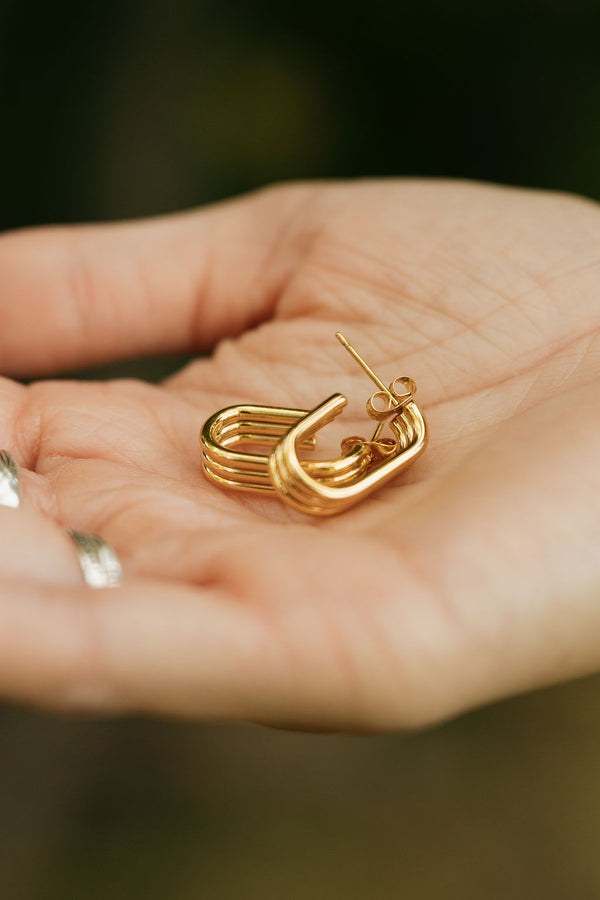 Mix and match your vibe with the Cassie Earring Set! This trio includes one classic stud and two versatile hoops, giving you endless styling possibilities. Whether you're going minimal or...