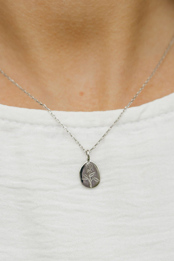 Elevate your everyday look with our Dania Necklace in silver! This delightfully dainty chain features a charming flower-engraved pendant that adds just the right touch of whimsy to any outfit. Perfect for layering or wearing solo, this little beauty is ready to bloom wherever you go!