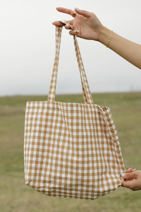 Greta Gingham Tote-Blue Greta Gingham Tote-Blue