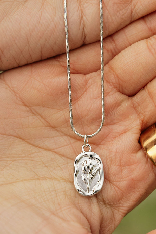 Elevate your everyday look with our Dania Necklace in silver! This delightfully dainty chain features a charming flower-engraved pendant that adds just the right touch of whimsy to any outfit....