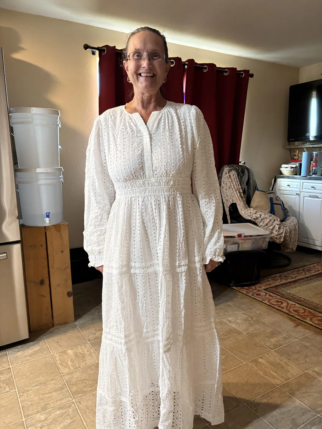 Elegant, timeless, and effortlessly graceful — the Caribbean Dress is your new favorite white dress for any special occasion. Featuring delicate eyelet fabric, long sleeves with a slight puff, and a beautifully tiered maxi skirt, this dress balances classic charm with modern comfort. The flattering silhouette and hidden pockets make it as practical as it is lovely. Perfect for temple days, family photos, or simply when you want to feel your best.