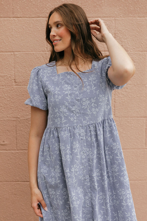 Step into a garden of style with the Sabrina Dress in beautiful blue. This playful long sleeve maxi features a delicate floral print that dances with every breeze, making it...