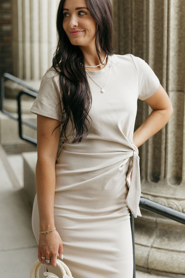The Minnie Dress in Cream offers a stunningly flattering silhouette enhanced by its gorgeous lace detail at the neckline. Though the buttons are purely decorative, they add a charming touch...