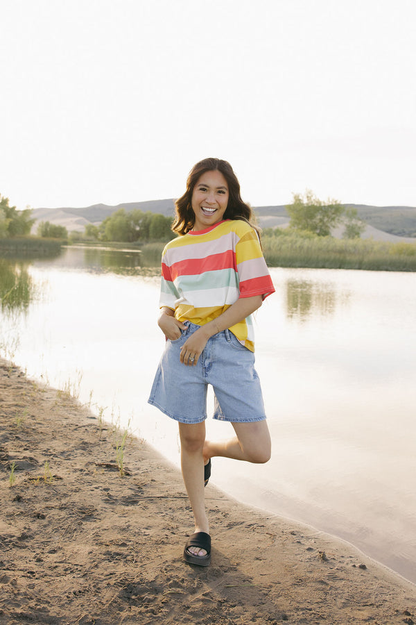 Enjoy a relaxed fit with our Russ Top in Driftwood and Emerald stripes. Perfect for a casual day out, this top combines style and comfort for a laid-back yet fashionable...