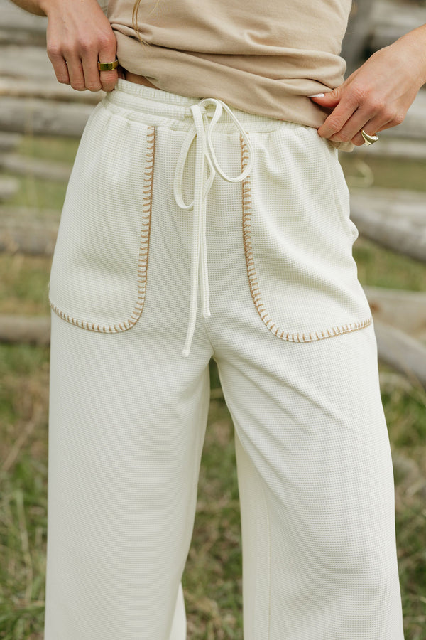 Introducing the Piper Sweater Pants in the gorgeous Mocha color. These comfy pants feature an elastic waist and tie, along with a wide leg and waffle knit fabric. Perfect to...