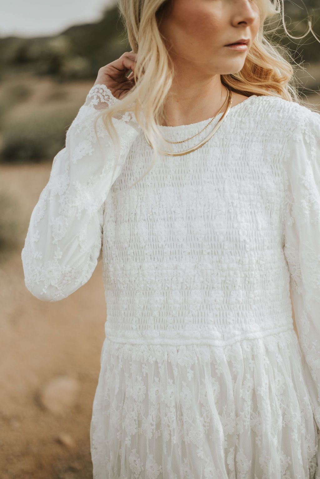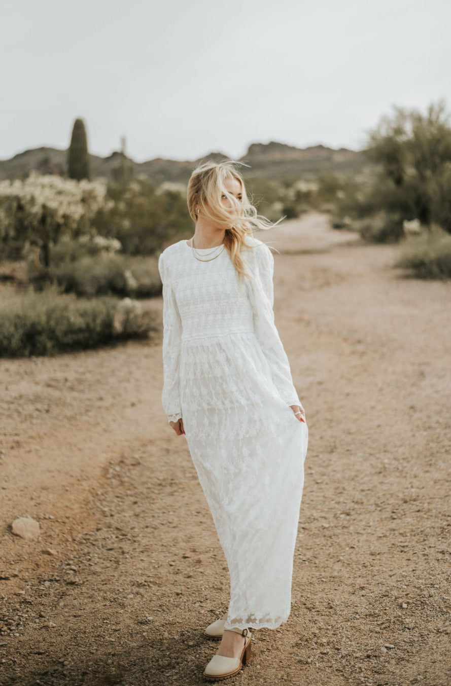 The Arabelle Dress is your typical jaw dropping white dress. This dress features a maxi length, a flowy skirt with a slightly fitted waistline, the cutest design that can be seen throughout the dress, and a keyhole clasp that can be found at the back of the dress. This dress makes for the perfect dress for any occasion you can think of!