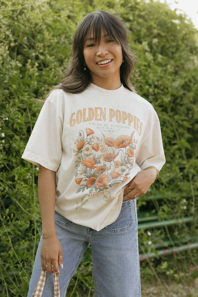 Golden Poppies Tee-Cream, boutique clothing, casual, the perfect tee!